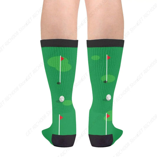 Golf Green Grass Loch auf Golfplatzbällen Golfen Lässige lustige Funky Neuheit Mode Socken für Männer Frauen Drucken